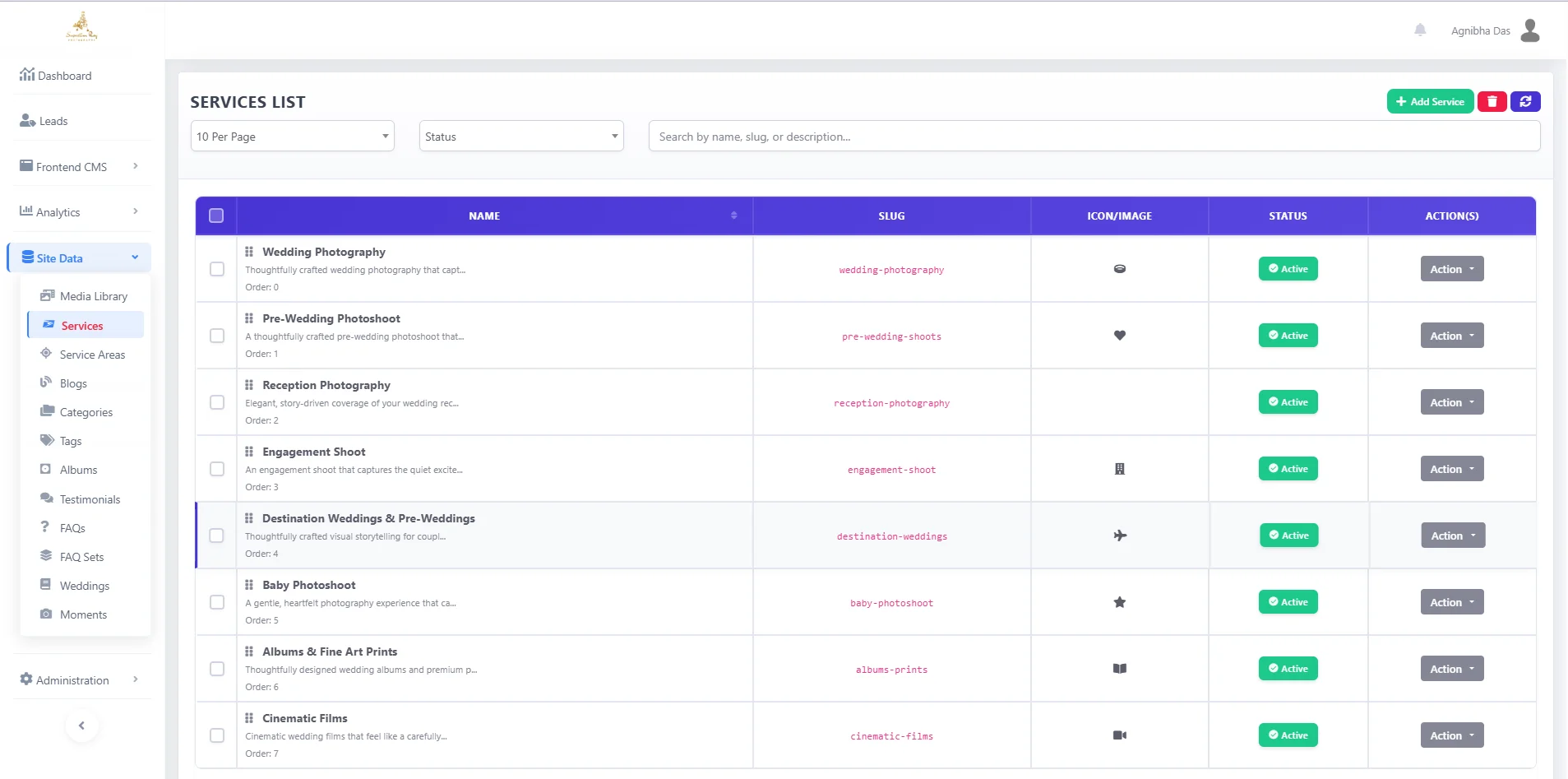 Dedicated galleries to showcase wedding shoots, highlights, and curated collections. -