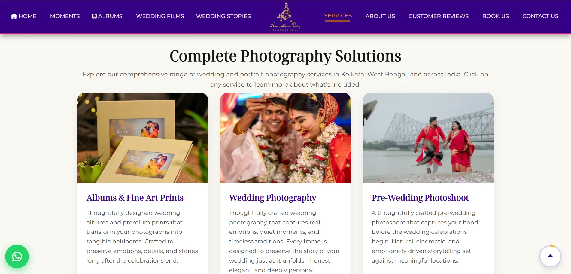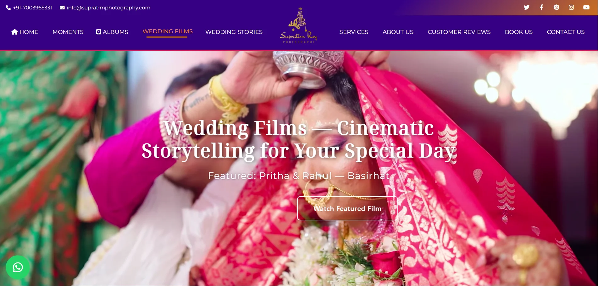 The final website positioned Supratim Photography as a premium wedding photography brand with a strong digital identity. The platform improved brand credibility, enabled better presentation of work, and created a reliable channel for direct client enquiries.